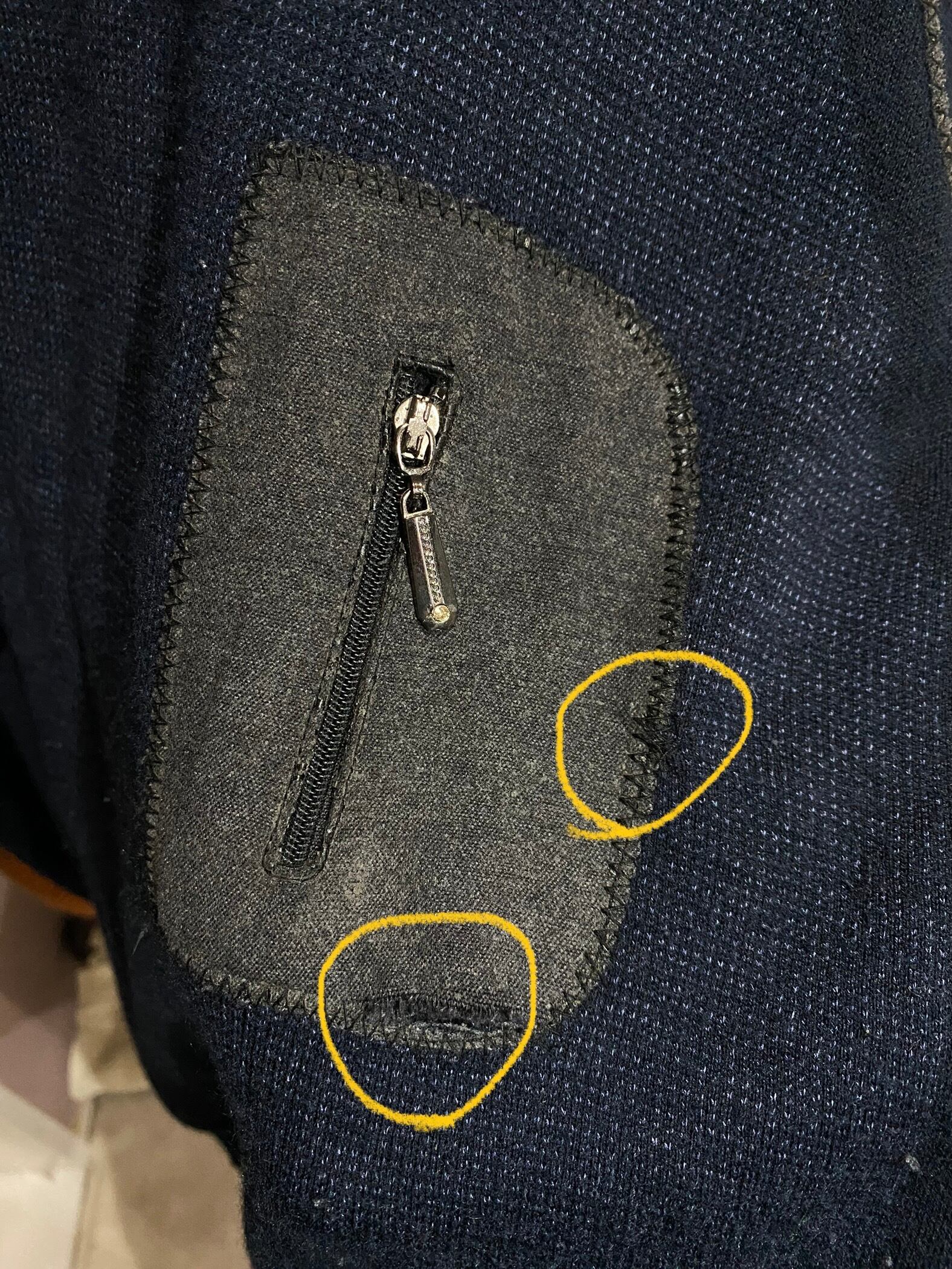 ポケット部分、ほつれとダメージあり